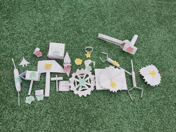在“工科创意拼贴”个人特色环节,党员们充分发挥专业特长,以绘图纸、工程废料、电子元件等为素材,亲手打造出齿轮传动模型、PLC控制模块示意图、自动化生产线简化模型等作品。每一件作品不仅还原了机械结构的精密性、自动化系统的逻辑性,更在醒目位置贴上了承载青春誓言的便利贴——“以精密制造筑牢强国之基”“用智能控制赋能产业升级”“青春献党,工科报国”等真挚话语,既展现了党员扎实的专业功底,更传递出新时代工科青年投身制造强国、数字中国建设的坚定信念。活动全程采用积分制,根据团队协作效率、专业创意呈现、党性素养体现等维度综合评分,最终评选出一、二、三、四等奖,为获奖者颁发了包含专业工具套装、工程技术手册、党建与专业融合读物等在内的精美礼品,实现精神激励与专业赋能的双重成效。