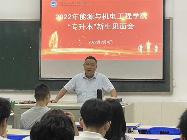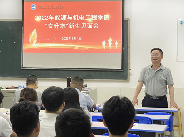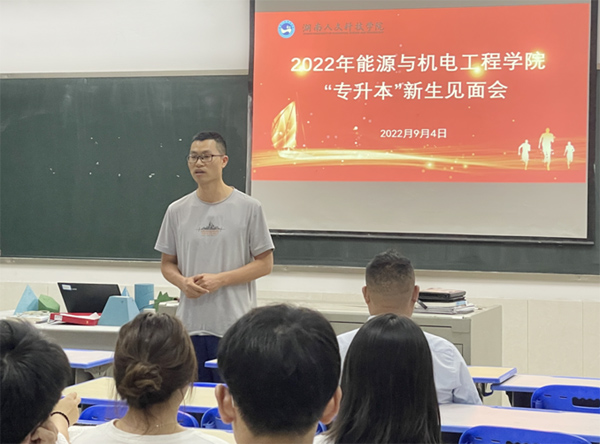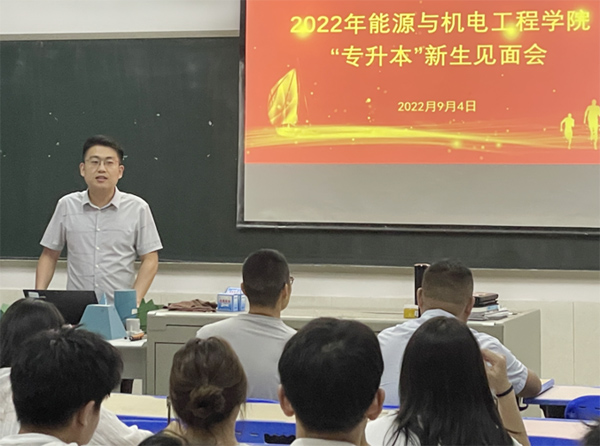 2022年9月4日,能源与机电工程学院在同心楼302召开“专升本”新生见面会,教授唐川林、院长胡东、副院长王舒、机械设计制造及其自动化教研室主任林鹏以及“专升本”全体新生参加了会议,会议由王舒主持。