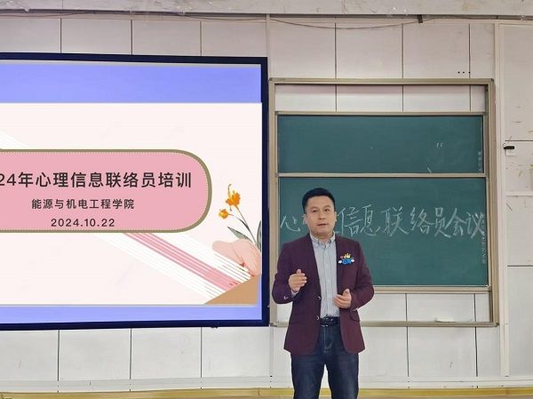 为帮助新生班级心理委员、信息联络员加强自身角色认同感和使命感,提高朋辈互助的能力与水平,引导和帮助新生“扣好第一粒扣子”,能源与机电工程学院组织开展了2024级心理信息联络员培训,能机学院党总支副书记石海出席并讲话,2024级全体心理委员、心理部干事、信息联络员参会。