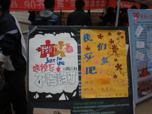 2010年11月26日中午,通信与控制工程系团总支在第一食堂前举办了“我们交友吧”团活动。