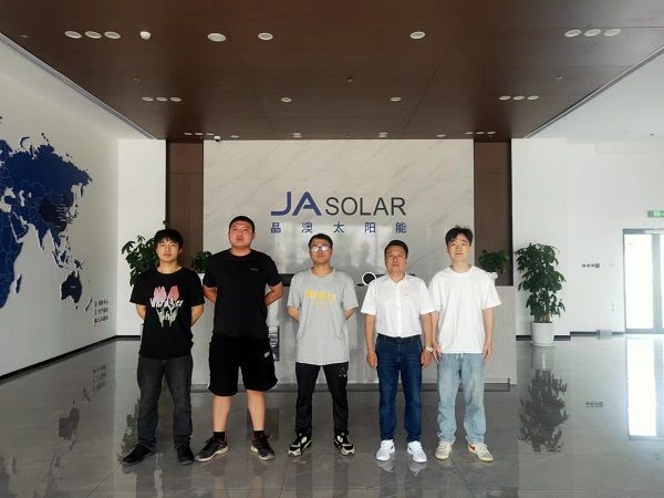 副书记石海、就业专干蔡王飞与晶澳3+1实习学生合影