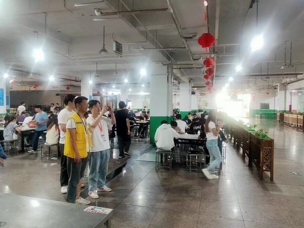 就业专干蔡王飞观察企业餐厅情况