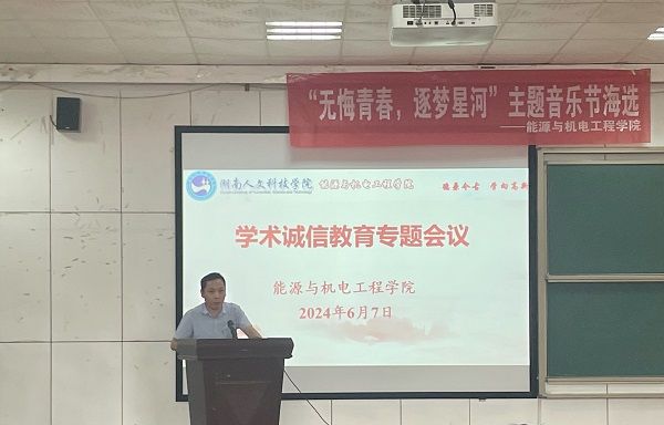 为加强科研诚信建设,营造风清气正的育人环境和求真务实的学术氛围,6月7日下午,能源与机电工程学院在同德楼601组织开展学术诚信主题教育活动。学院领导班子、全体专任教师参加会议,会议由副院长彭广威主持。