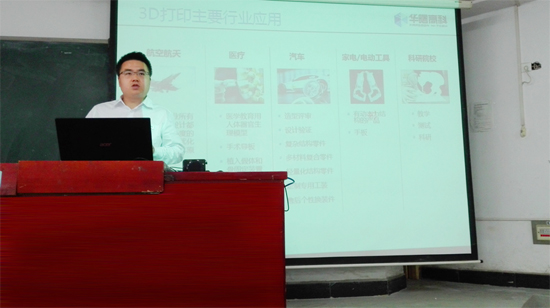 2016年5月21日在致远楼301室,湖南省激光增材制造工程技术研究中心陈勃生教授3D打印科研团队一行受邀参加了ballbet贝博bb艾弗森《教授博士》论坛,团队成员边宏高工为能源与机电工程学院材料成型、机械专业的二百余师生带来一场题为《3D打印成型技术、设备的发展及应用》讲座,学术讲座由材料成型及控制工程专业负责人谭峰亮博士主持。