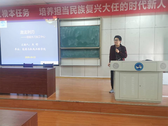 2020年10月22日下午,能源与机电工程学院举办农业机械学术讲座,副院长胡东博士、机械教研室主任王舒博士和林鹏博士分别做了题为《脉冲水射流与气力泵联合清淤机理及应用研究》、《激流利刃——智能水刀加工中心》和《淹没射流强化海底采矿用气力泵吸口流场特性研究》的学术讲座。讲座由林鹏博士主持,机械设计制造及其自动化专业2018级全体学生及部分教师代表聆听了讲座。
