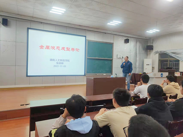 1028日晚,湖南文昌新材料科技股份有限公司副总经理、总工程师,湖南省铝合金半固态成形技术工程技术研究中心主任张桢林博士在同德楼601为国家一流专业材料成型及控制工程2022级新生上了“金属液态成形”导论课。