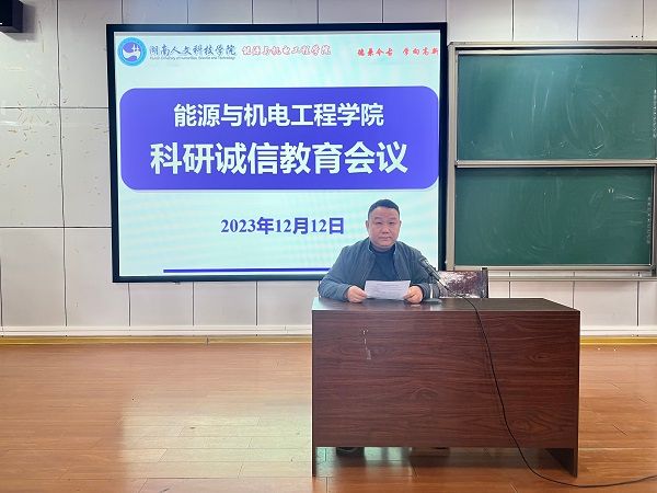 为进一步推进科研诚信建设和学风建设,维护学术道德,严防学术不端,12月12日下午,能源与机电工程学院在同德楼601教室组织召开科研诚信教育专题会议。学院领导班子出席,全体教师参加。会议由院长胡东主持。