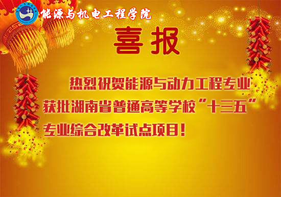 喜报:能源与动力工程专业获批湖南省普通高等学校“十三五”专业综合改革试点项目!