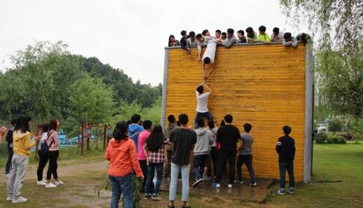 本次户外素质拓展活动主要有翻越胜利墙、信任背摔及分享、同心鼓、变形虫寻宝、快乐向前冲等比赛项目。活动强化了学员的团队意识、冒险精神、组织纪律和认真执着的态度,培植了学员攻坚克难、勇往直前的信念,激发了学员自强不息、锐意进取的气概,更进一步增进了师生之间的情谊。(侯志伟供稿)