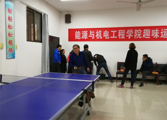 2017年11月18日上午,位于学而楼4楼的能源与机电工程学院教工小家热闹非凡,到处充满欢声笑语,学院首次趣味运动会正在如火如荼地举行。运动会项目丰富多彩,既有蒙眼摸鼻、夹乒乓球等趣味项目,也有跳绳、乒乓球比赛等体力项目,还有象棋比赛、扑克升级赛等脑力项目。每个项目设一等奖、二等奖和纪念奖,吸引了在家所有教职工参与。整个活动充满了欢声笑语,同志们不仅收获了运动的喜悦,放松了心情,而且增进了友谊,陶冶了情操。(刘宗良供稿)