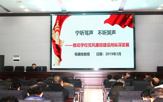 3月12日下午,校纪委书记杨鑫铨同志在图书馆第二会议室为能源与机电工程学院和信息学院全体教职工作《宁听骂声 不听哭声——推动学校党风廉政建设向纵深发展》专题讲座