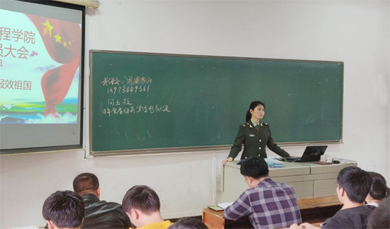 (湖南省征兵宣传形象大使何玉孜同学进行宣传报告)