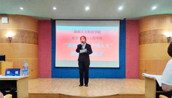 6月20日晚,能源与机电工程学院“激漾青春,声动人文”大学生演讲与朗诵比赛决赛在养根楼报告厅隆重举行。此次活动为能机学院“工科学生人文素质培养系列活动”之一,由能机学院党总支主办,能机学院学生会承办。党总支书记彭辉、副书记伍铁斌、教师代表周浏阳、聂时君、曹锋、全体辅导员及学生会主要干部出席比赛并担任评委,近300名学生代表参加此次活动。