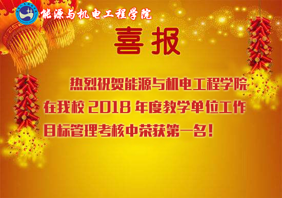 能源与机电工程学院在贝博2018年度教学单位工作目标管理考核中荣获第一名