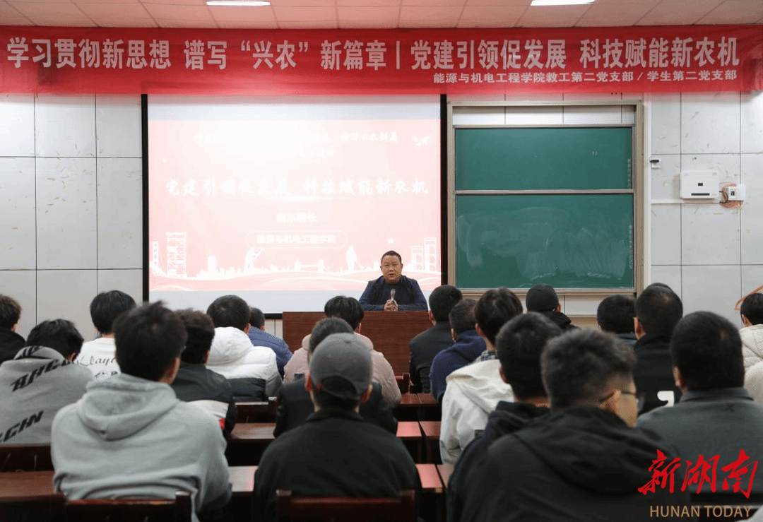 湖南日报·新湖南客户端11月16日讯(通讯员 聂时君 智国申)为发挥党员干部先锋模范作用,打造“教师+学生柔性课程团队”一体化专业学习机制,推行“团队建在兴趣上、支部建在团队上”“党建+专业”融合模式,11月12日,ballbet贝博bb艾弗森能源与机电工程学院教工第二党支部与学生第二党支部联合开展“党建引领促发展,科技赋能新农机——学习贯彻新思想,谱写‘兴农’新篇章”主题党日活动。