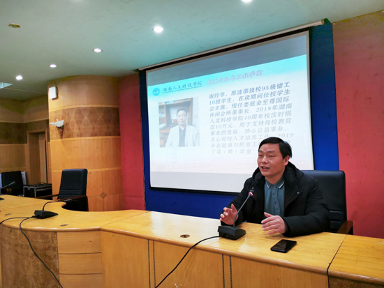谢玲华先生为贝博优秀校友,在读期间曾任校学生会主席,现任娄底金至尊国际休闲会所董事长,2018年ballbet贝博bb艾弗森40周年校庆时捐款10万元,用于支持母校教育事业的发展;热心公益事业,关心母校人才培养工作,2019年在能源与机电工程学院设立了奖(助)学金,每年出资四千元,用于奖励2名品学兼优的家庭贫困学生,旨在激励和引领能机学子刻苦学习,立志成才,为学校争取荣誉,为民族兴旺、国家强盛做出积极贡献。