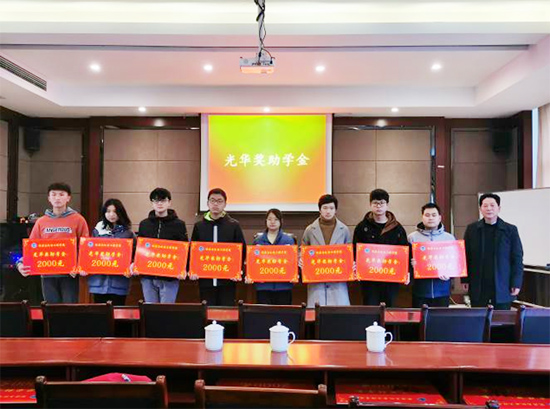 谢平光先生是能机学院优秀校友,娄星区人大代表,2002年创办娄底光华机械设备制造有限公司,任董事长兼总经理,被评为湖南省创业标兵、湖南省推进新型工业化优秀企业家、娄底市优秀企业家、2019年被推荐为湖南省非公有制经济代表人士。光华奖助学金由谢平光先生于2019年设立,2019年出资两万五千元,2020年出资三万一千元,两年共奖励了27名品学兼优的家庭贫困学生,同时出资六千元用于支持学院学工团队开展实践育人活动,旨在激励和引领人文学子刻苦学习,立志成才,为学校争取荣誉,为民族兴旺、国家强盛做出积极贡献。