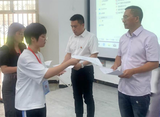 会上,学生会主要干部们向石海、伍铁斌两位领导现场递交了《诚信考试承诺书》,并在学生会主席胡磊同学的带领下以饱满的热情集体宣读了考试承诺书内容。(文戴建利/图 李林)