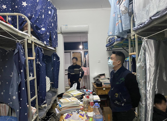 会后,班主任及辅导员集体下寝,了解学生返校生活情况,提醒学生做好“寝室内务”,为“开学第一课”做好准备。