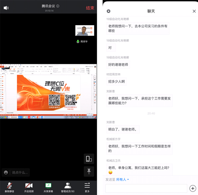 为做好新冠肺炎疫情期间就业工作,1月11晚七点半,VAMA华菱安赛乐塔米尔汽车板有限公司和能源与机电工程学院联合举办了线上宣讲会。