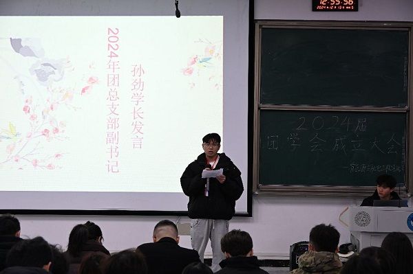 团总支主席成员代表孙劲阐述了团总支职责,并回顾了团总支各部门过往取得的成就。强调了团队能力和集体智慧的重要性,并希望大家在新的一年里的工作中,能有所收获。鼓励团总支学生会成员保持初心,认真工作,创造价值,在工作中不断保持发展创新的思维,于时代洪流中把握机遇,在日后的学习工作中创造辉煌。提升服务质量,共创能源与机电工程学院美好未来。