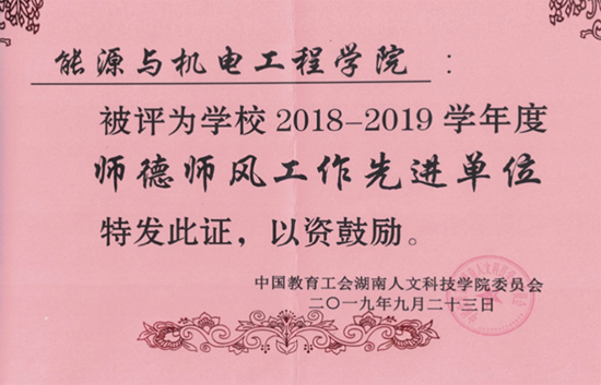 常言道,“立人先立德,树人先树品”。作为教师,既要承担授业解惑的责任,也要承担作为学生健康成长的指导者和引路人的责任。能源与机电工程学院全体教职员工,坚持把立德树人作为中心环节,把思想政治工作贯穿教育教学全过程,努力培养德智体美全面发展的社会主义建设者和接班人。近一年来,我院扎实开展师德师风专项教育,召开了相关表彰大会两次。