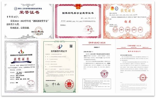 课余时间,曾韦淮秉持研、赛、创一手抓原则。2022年8月,参加湖南省第十届大学生创业计划竞赛,获得“铜奖”;2023年5月,主持2022年省级创新训练项目“追踪碳足迹,聚力零碳排—基于‘双碳’战略下个人碳排放的追踪与探究”,此前以第一作者在《科学与财富》省级学术期刊上发表《“双碳”战略下娄底市居民碳足迹的影响因素研究》一文,项目按既定目标既定时间段完成了各项任务,圆满结题;2023年12月,以科技作品“‘焦’淡如水—一种能有效去除焦油的生物质气化炉”参加湖南省首届大学生节能减排社会实践与科技竞赛,获得省级“三等奖”,2024年4月成功将该科技作品申批为实用新型专利。这些荣誉充分展现了他的专业知识、创新能力和勇于探索的精神风貌,毕业后,曾韦淮也将带着这份荣誉,踏上他新的逐梦之旅。