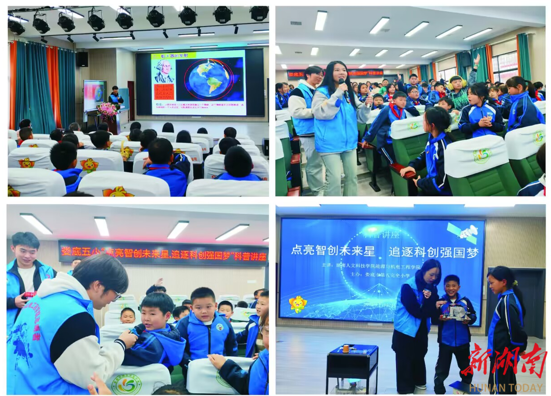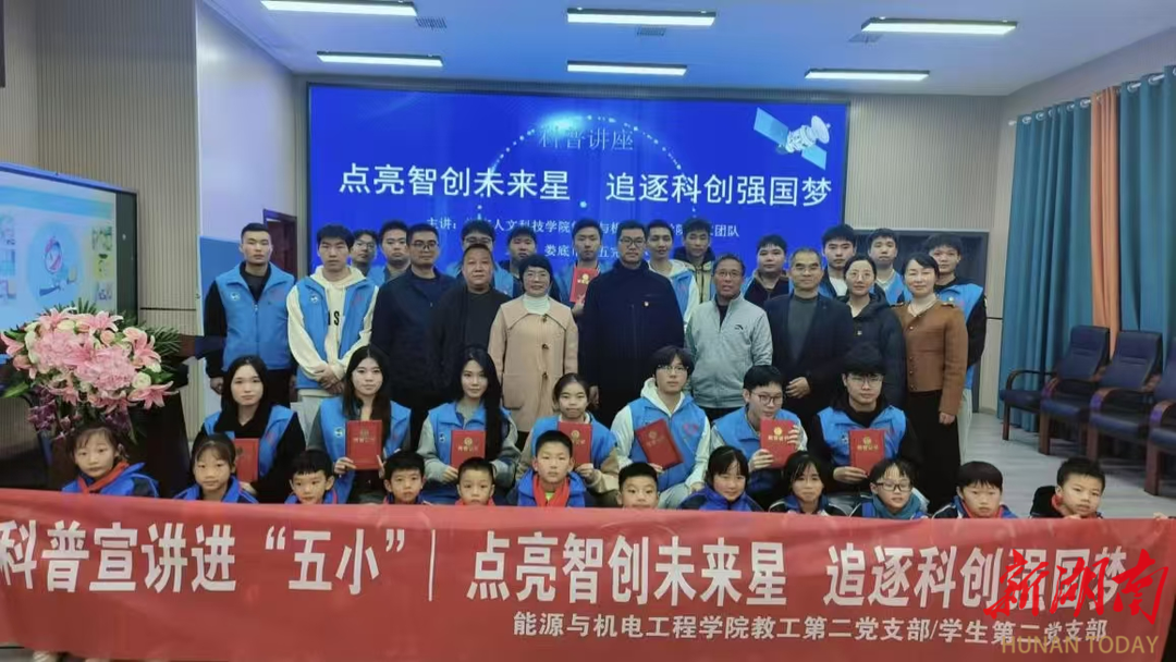 湖南日报·新湖南客户端11月25日讯(通讯员 聂时君 卢婧嫚 胡东) 为深入贯彻国家科技强国战略,近日,ballbet贝博bb艾弗森能源与机电工程学院教工、学生第二党支部联合娄底市第五小学举办了一场别开生面的科普主题党日活动。此次活动以湖南省大学生工程实践与创新能力大赛为契机,深度融合思政教育教学元素,在提升大学生回馈社会能力的同时,助力小学生汲取科技知识、拓展科技视野、点燃科技热情,胸怀科技报国。