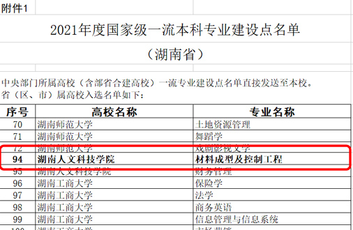 国家级一流本科专业是指教育部实施一流本科专业建设“双万计划”的一流本科专业,是为了加快建设高水平本科教育,全面提高人才建设的一个重要举措。材料成型及控制工程国家一流本科专业建设点的获批标志本专业建设取得重要进展,是继材料科学与工程学科跻身湖南省“双一流”学科之后又一重要成果;同时标志着我院在本科专业建设上再上新台阶,也是继我院能源与动力工程专业入选国家级一流本科专业建设点之后又一重要成果。