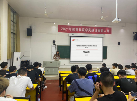 5月27日晚,体育学院在博达楼115开展了“金融知识进校园”诚信征信主题宣讲活动,此次大会旨在让同学们了解征信知识,对学生进行一次征信、金融知识的普及与教育。宣讲由负责贷补工作的辅导员闵婷主讲,全体贷款学生和大一学生参加。