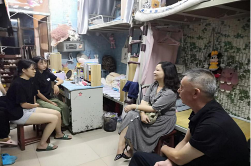 石校长和刘院长在寝室座谈时,仔细询问同学们学习和生活上遇到的困难,针对同学们提出晾衣架不够的问题,石校长与刘院长观察寝室周边环境后,帮助同学们设想解决办法,并一再嘱咐同学们都在学校食堂就餐,以保障食品安全。刘院长询问同学们第一天上课的感想,了解她们对课堂教师和课程内容的意见和建议。同时,石校长指出同学们要注重综合素质提高,在近期香港问题上,石校长温馨的提醒同学们要注意自己的网络言论,清晰的认识到问题的实质。离开寝室前,石校长和刘院长叮嘱同学们,以后遇到困难可以随时联系。