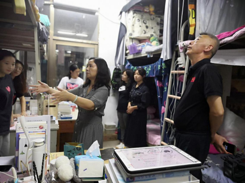 9月2日晚,副校长石潇纯在体育学院院长刘玉江的陪同下走访了10栋女生寝室,并与同学们展开了亲切的交流。