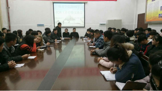 2016年12月15日晚20:30,体育学院在体育馆会议室召开2016年代班工作经验交流会。谢嘉副书记,全体辅导员、16级代班以及学生会、团总支、党支部、党建小组的全体学生干部参加会议。