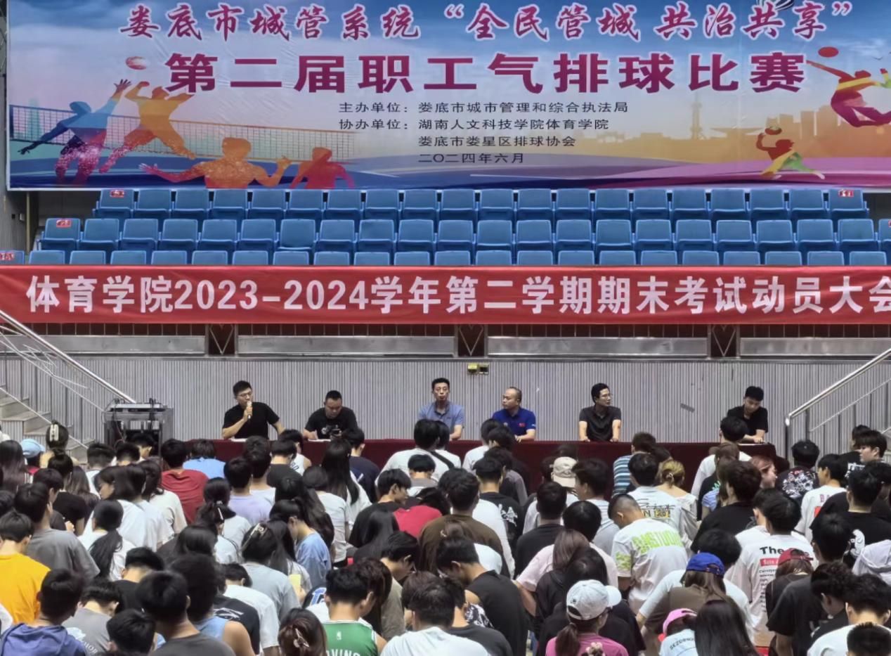2024年6月28日晚19:40,体育学院开展了期末学生管理工作会议暨2023-2024学年第二学期诚信考试动员大会。对期末和暑期学生管理工作进行了安排并重点强调了诚信考试的纪律要求。学院党总支书记曾黎、院长周惠新、副院长陈勤、副院长董植寿、党总支副书记肖毅出席了本次会议,全体辅导员和全院学生共同参与。