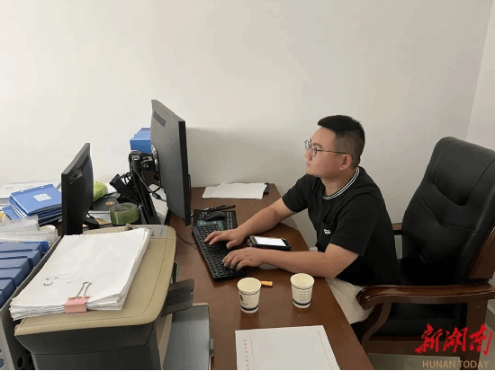 7月5日,岳阳县毛田镇政府,李东的办公室。湖南日报全媒体记者 傅聪 邹尚奇 摄