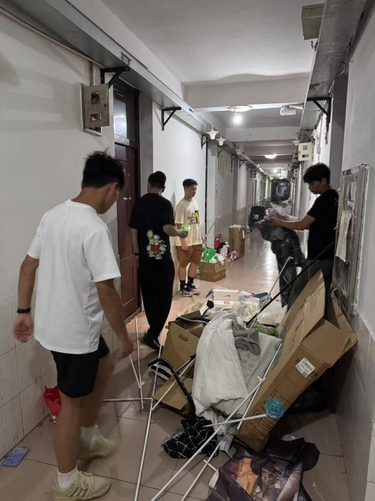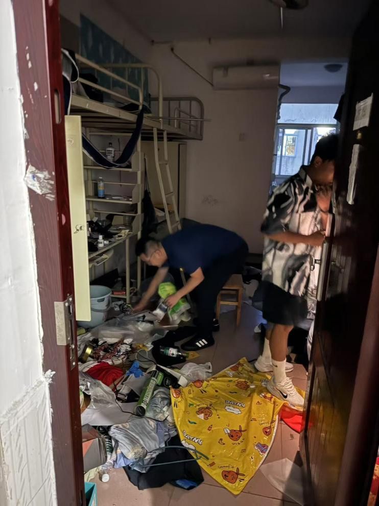 活动中,党员们手持清洁工具,重点针对毕业生离校后的空置寝室开展集中清理。分类处理的旧书籍、废纸张等可回收物统一运送至环保回收站,且对楼道、洗漱间等卫生死角进行清理和消杀。在大家的共同努力下,寝室焕然一新。