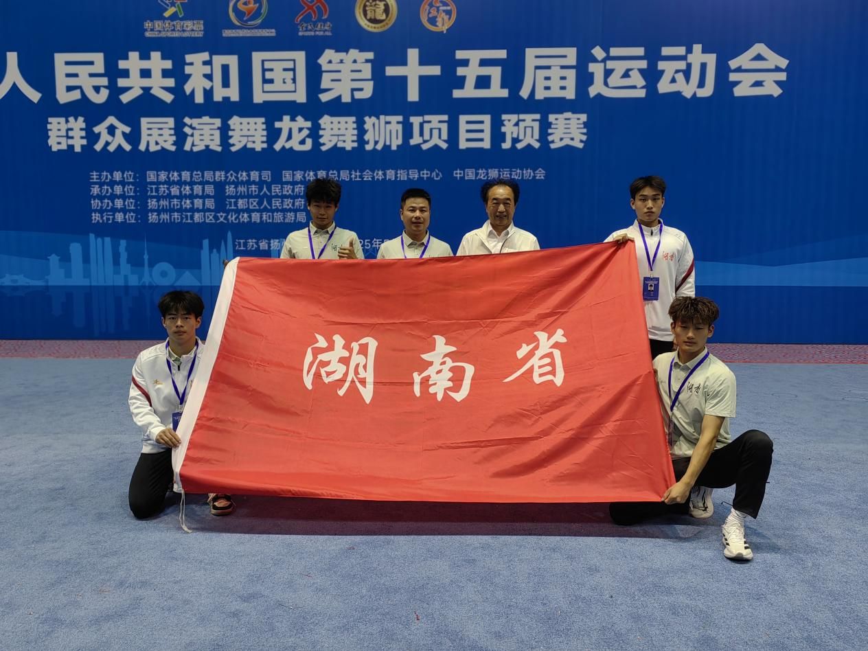 近日,在江苏省扬州市举办的中华人民共和国第十五届运动会群众展演舞龙舞狮项目预赛中,ballbet贝博bb艾弗森龙狮队代表湖南省参加障碍南狮项目比赛,经过激烈比拼,以第六名的成绩成功进入全运会决赛。