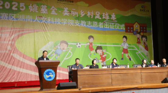 2025年4月23日上午,姚基金“美丽乡村足球季”志愿者出征仪式在ballbet贝博bb艾弗森体育馆隆重举行。湖南省希望工程办公室主任刘颖琦,ballbet贝博bb艾弗森党委副书记朱强,湖南省青少年发展基金会希望事业部部长喻慕鸿,共青团ballbet贝博bb艾弗森委员会书记刘佳,ballbet贝博bb艾弗森体育学院党总支书记曾黎,ballbet贝博bb艾弗森体育学院院长周惠新等领导嘉宾及支教志愿者共聚一堂,共同见证这场以足球为媒、助力乡村教育振兴的青春行动。