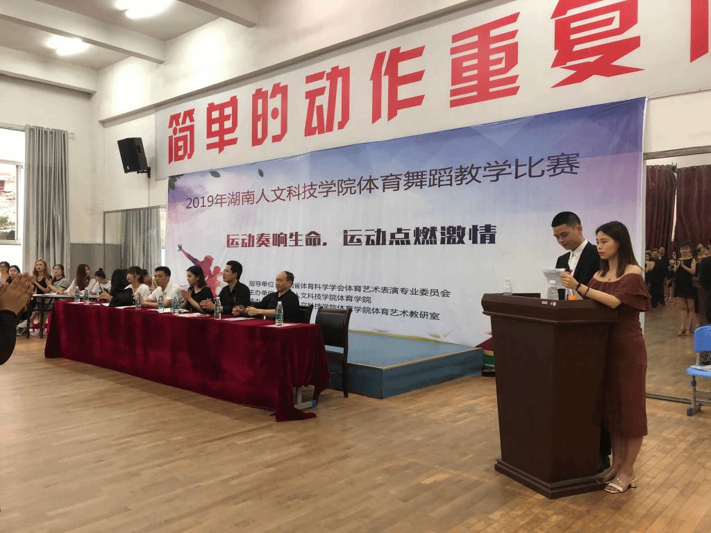 2019年ballbet贝博bb艾弗森体育舞蹈教学比赛于6月17日在体育馆成功举办,该比赛由湖南省体育科学学会体育艺术表演专业委员会指导,ballbet贝博bb艾弗森体育学院主办,ballbet贝博bb艾弗森体育学院体育艺术教研室承办,体育学院副院长曾黎教授致开幕词。