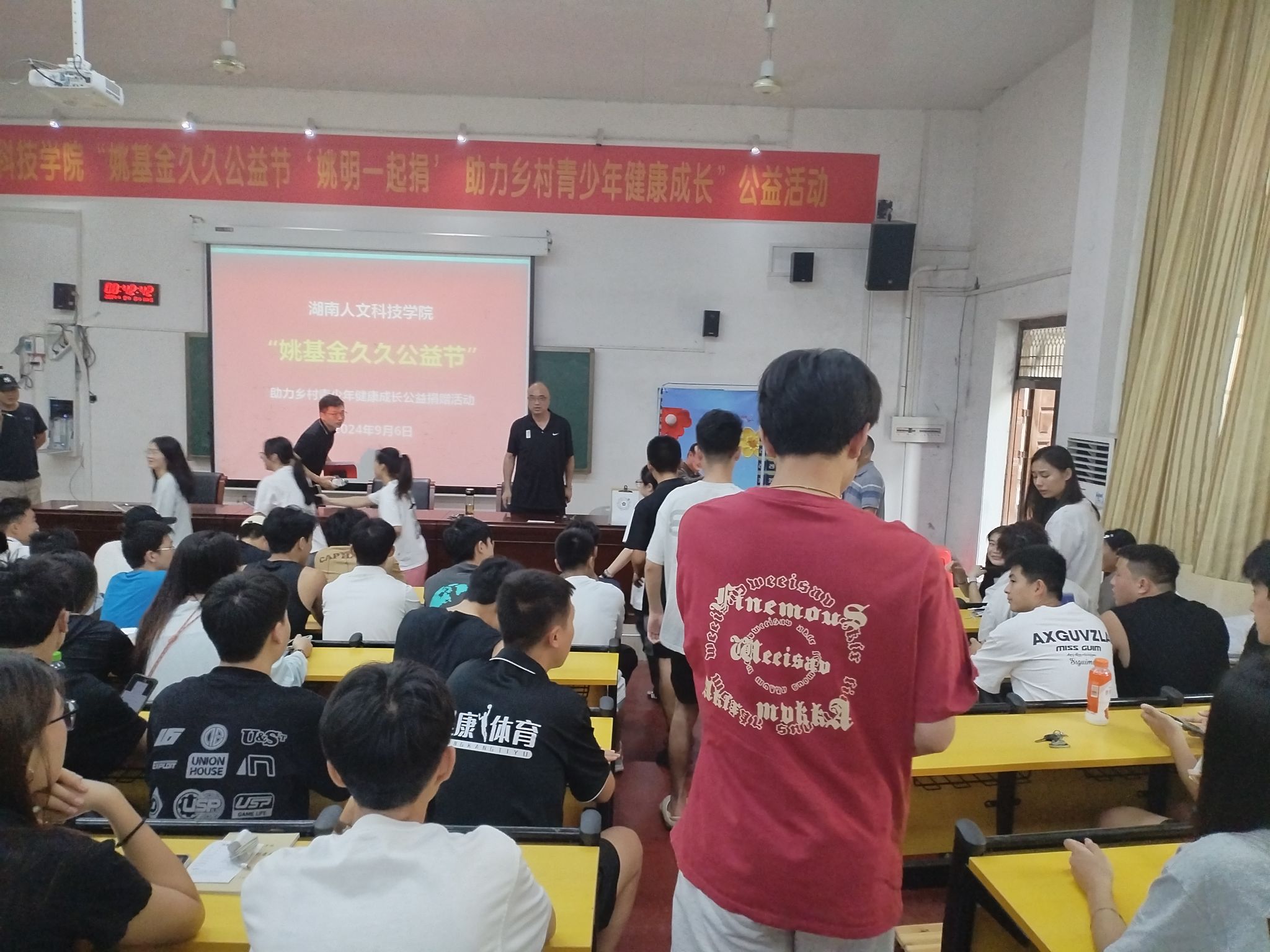 9月6日上午,“姚基金久久公益节”在博达楼115报告大厅成功举办。本次活动以篮球文化为纽带,汇聚全院师生的爱心,助力乡村孩子健康成长。体育学院院长周惠新教授、党总支书记曾黎教授等多位领导亲临现场,与姚基金负责人颜献忠副教授共同见证这一温暖时刻。
