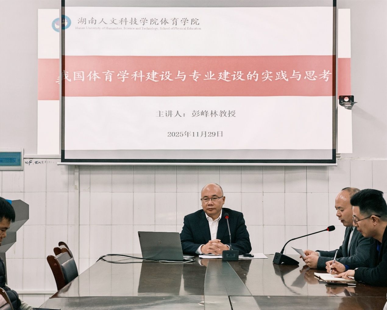 2025年11月29日,广西体育高等专科学校校长、二级教授、博士生导师彭峰林教授应贝博邀请,莅临体育学院开展了一场题为《我国体育学科建设与专业建设的实践与思考》的学术讲座。此次讲座由体育学院院长周惠新主持。彭峰林教授作为体育学科领域的知名专家,从战略定位、历史脉络、实践经验、问题反思以及未来展望等多个维度,对我国体育学科与专业建设的发展路径和时代使命进行了系统梳理与深入阐释。