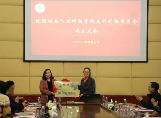 4月6日下午,民盟ballbet贝博bb艾弗森支部升格委员会成立大会在学校图书馆第一报告厅召开。娄底市政协副主席、民盟娄底市委主委邵瑛,贝博党委副书记李军林出席。民盟娄底市委专职副主委王红贵,民盟娄底市委办公室副主任王姣妮,学校宣传统战部部长谢柳,九三学社ballbet贝博bb艾弗森委员会主委徐益,民盟ballbet贝博bb艾弗森支部40余名盟员等参加会议。 民盟娄底市委邵英等代表民盟市委宣读了民盟ballbet贝博bb艾弗森支部升格批复,并为民盟ballbet贝博bb艾弗森委员会授牌和授章。 徐益代表学院民主党派基层组织致贺词。会议选举谢四连、周惠新、陈勤、彭惠芬、刘友继当选为民盟ballbet贝博bb艾弗森第一届委员会委员。民盟ballbet贝博bb艾弗森第六届支部委员会主委谢四连做工作报告,她介绍了支部的组织概况、历史沿革、主要工作成绩,并作表态发言。她表示,民盟ballbet贝博bb艾弗森委员会将继续肩负职责,不辱使命,继续薪火传承,在民盟娄底市委和学校党委的领导下,加强理论学习,增强组织凝聚力;立足本职岗位,加强科研教学业务能力学习,为学校高质量发展和娄底经济社会发展贡献力量。李军林充分肯定了民盟ballbet贝博bb艾弗森支部的工作和成绩,他希望民盟ballbet贝博bb艾弗森委员会新一届班子成员和全体盟员团结协作,互帮互助;加强思想政治建设,坚定正确政治方向;加强自身能力建设,服务学校事业发展;加强参政议政能力建设,服务政府决策咨询。邵瑛对民盟ballbet贝博bb艾弗森支部工作给予了高度评价,对历任主委班子成员的工作表示肯定和感谢。她对民盟ballbet贝博bb艾弗森委员会第一届委员会成员和全体盟员提出了三点希望和要求:一是要进一步加强思想政治建设,学政治、懂政治,增加政治判断力和领悟力;二是要进一步提高专业能力,多出专家、名家和大家;三是要进一步提高参政议政与社会服务能力,为教育事业发展和人才培养做出更大的贡献。(文、图 彭惠芬)