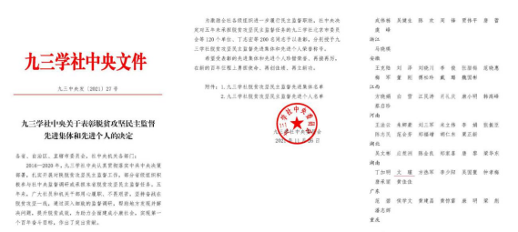 为激励全社各级组织进一步履行民主监督职能,九三学社中央委员会对2016—2020年期间承担脱贫攻坚民主监督任务的先进单位及先进个人进行表彰。贝博材料与环境工程学院院长、九三社员文瑾教授荣获九三学社中央委员会“脱贫攻坚民主监督先进个人”荣誉称号。