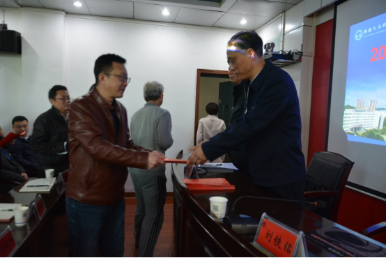 会后,各单位向校长刘铁铭递交了平安校园建设责任状。(武保处供稿)