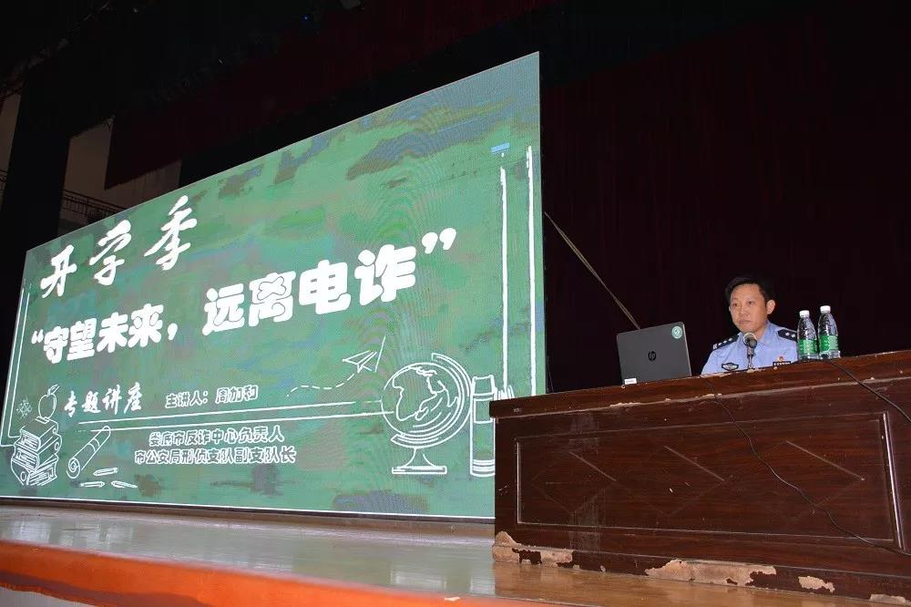 为开展网络安全宣传周活动,增强学生防电信诈骗意识,提高识别电信诈骗手段能力,9月18号下午,贝博在体育馆举办了“守望未来,远离电诈”宣传授课活动。市公安局刑侦支队副支队长周加和主讲,贝博2019级4200余名新生参加。