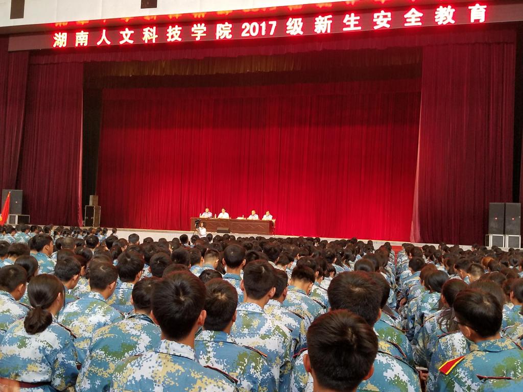 9月17日上午8点,本届全体新生在体育馆内集合完毕,保卫处处长郑秀星主持本次安全教育主题会议。首先,省消防协会的杨俊杰教官结合高校火灾案例并配上一副副触目惊心的火灾现场图片和视频,生动的表述了消防安全的重要性。同时为大家培训了一些如何在火场自救逃生的常识,并且现场展示如何使用灭火器、防毒面具等基本消防设备。随后,保卫处副处长雷振东从学校实际工作情况出发,结合学校案例,提醒同学们在校园生活中应该注意的安全事项,就人身安全、财产安全、交通安全、消防安全等几个方面讲述了各类安全知识。最后,副校长刘铁峰进一步强调,安全工作是校园整体工作的重中之重,大家要时刻树立起良好的安全防范意识与自我保护意识,杜绝安全事故的发生,为营造安全稳定的校园环境、构建平安和谐校园添砖加瓦。