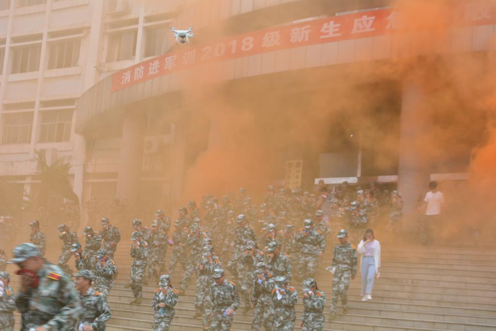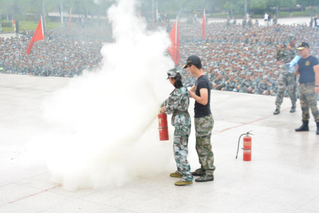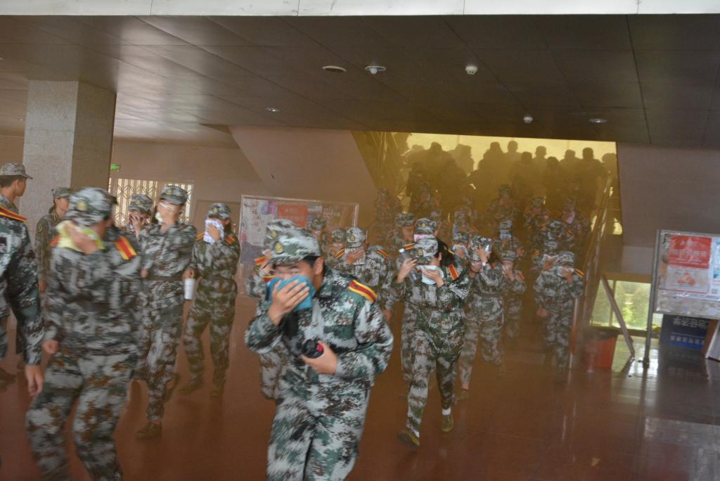 演练活动中,同学们以湿毛巾紧捂口鼻,在教官们的指挥下,弯腰顺着右墙行动。在整个疏散过程中,同学们听从教官指挥,严格按照既定疏散顺序与路线,迅速转移到指定安全地点。紧接着军训团团长郑秀星对此次演练作总结。他强调,寝室内最大的消防隐患就是火灾,大家要时刻树立起良好的安全防范意识与自我保护意识,杜绝安全事故的发生。随后,新生进行了灭火实战技能表演。