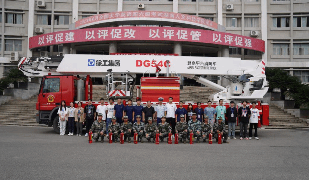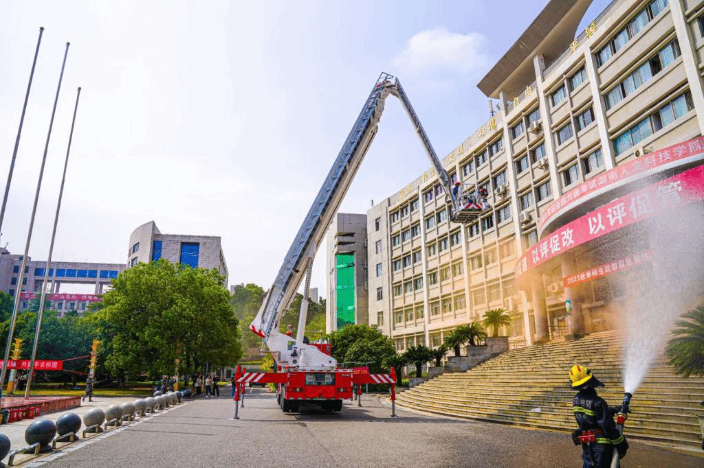 随后,娄星区消防救援大队宣讲教官对全体新生进行消防安全培训,讲述了消防安全事故的种类和案例、火灾发生后如何正确自救逃生、拨打119火警的详细流程、干粉灭火器的具体操作方法,并在现场点燃四口“火盆”,组织23级新生分组进行了实战灭火演练。当第一组同学成功的用干粉灭火器将燃起的“火盆”扑灭后,现场响起了阵阵掌声,极大的鼓舞了同学们的学习热情。