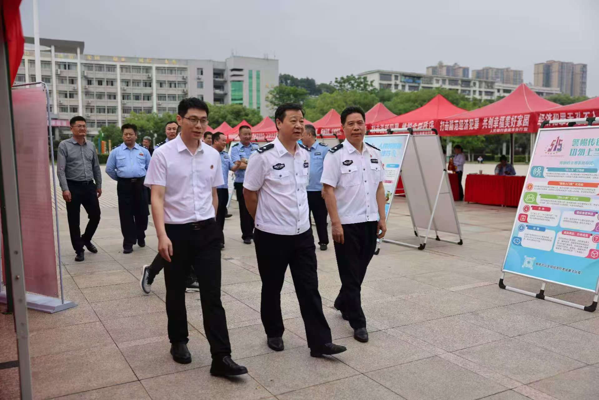 5月15日,在第16个全国打击和防范经济犯罪宣传日之际,娄底市公安局、ballbet贝博bb艾弗森、各大银行、金融等30余家单位,以“与民同心 为您守护”为主题,在海园广场举行娄底市“5·15”打击和防范经济犯罪主题宣传活动。娄底市公安局党委副书记、副局长卢韶华,贝博党委委员、副校长谭峰亮出席活动并全程参与指导。