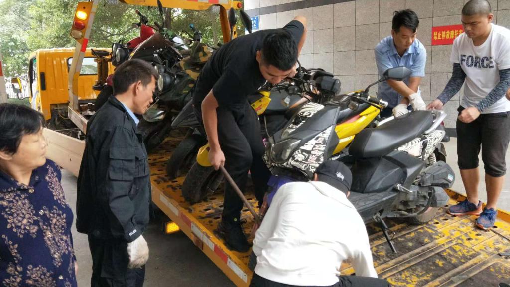违规停放摩托车整治现场